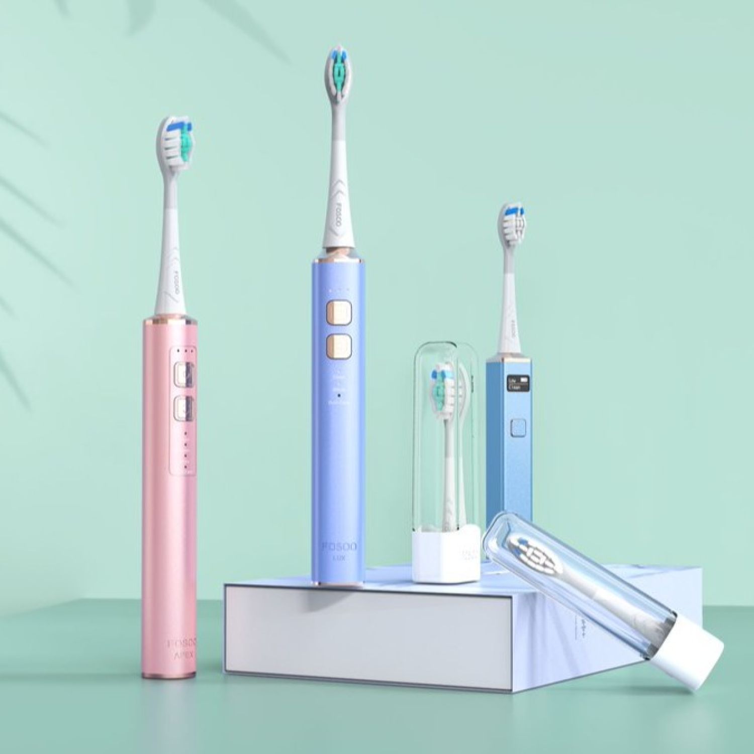 2 brush heads. 1 clean brush head for daily clean, Pedex nylon bristles; 1 sensitive brush head for sensitive teeth and gums, soft Pedex PBT bristles.