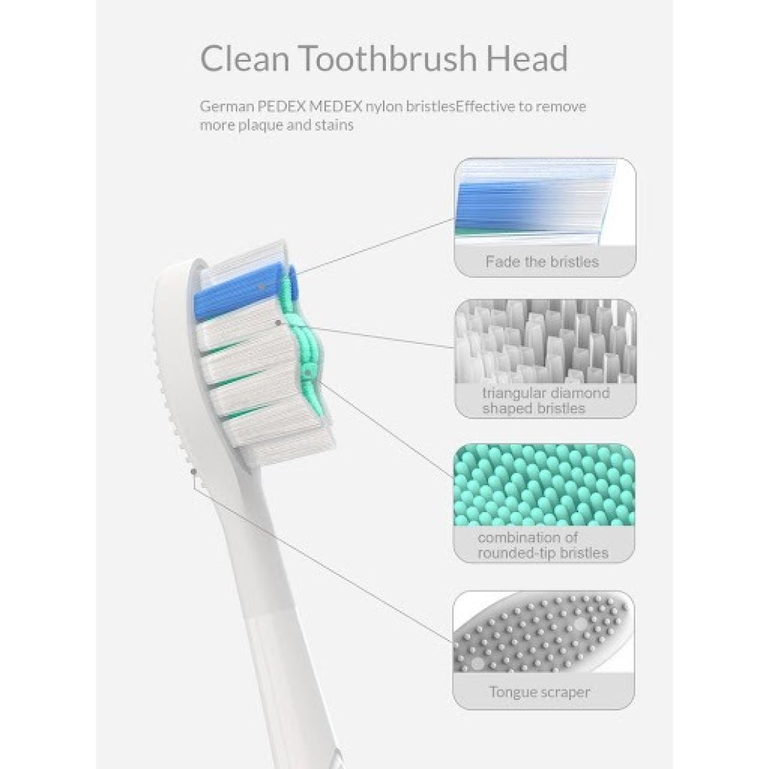 This includes a Clean brush head that helps remove plaque and stains.