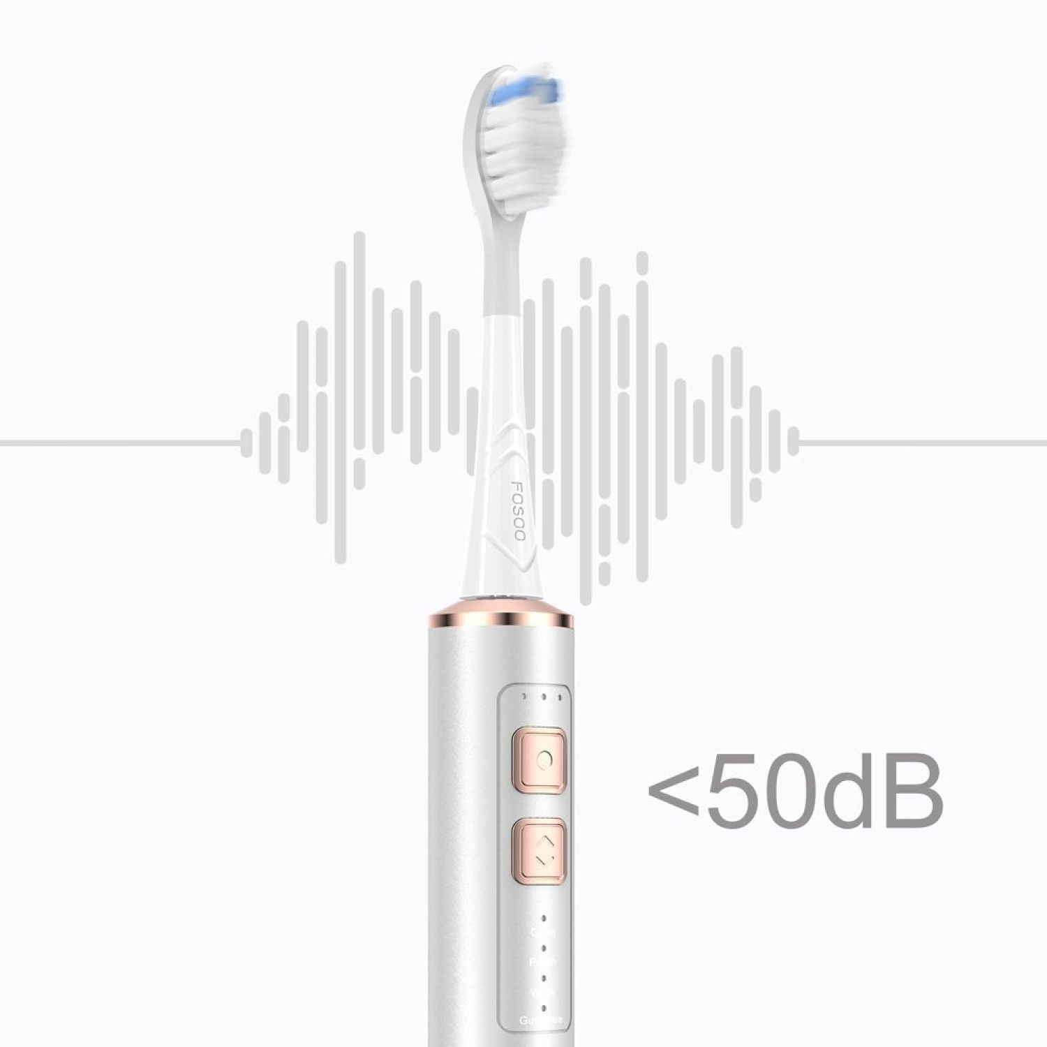 APEX Sonic electric toothbrushes use metal handles, which are more exquisite than plastic toothbrushes. The quality and durability of metal handles are also much better than ordinary plastic handles. After one or two years of use, it still looks the same as the new toothbrush. If the toothbrush accidentally slips from your hand, the metal material can ensure that your toothbrush is well protected. Some patients have hand and arm pain when using some electric toothbrush with vigorous vibrations. While FOSOO APEX makes gentle vibrations on the handle to offer maximum comfort, and vigorous vibrations on the brush head to achieve better cleaning. 180 Days Long Battery Life APEX electric toothbrush can last for about 6 months in just one charge. Users don’t have to worry about annoying scenes such as charging the toothbrush within two weeks, and there is no need to put a lot of charging cables on the sink. Quieter Sonic Electric Toothbrush, Operating Noise Lower Than 50 dB FOSOO uses ultrasonic noise reduction and mute technology to minimize the vibration sound to 50db, 20db lower than other regular electric toothbrushes on the market today. The reduced noise will not wake up sleeping family members when you brush your teeth in the morning. There is only the vibration sound of the bristles during operation, which can ensure a good cleaning effect and brushing experience even in quiet conditions. A Better Clean than Manual Brushing The cleaning system present on FOSOO electric toothbrush is greatly upgraded as a result of the German Pedex triangular diamond bristles which maximize the density of the bristles. It offers an effective cleaning compares to 20% ordinary bristles. The dentist said that the tongue coating contains harmful substances such as pathogens, molds, and viruses, which are the direct cause of periodontitis. FOSOO APEX electric toothbrushes can remove 85% of the bacteria on the tongue coating. Two Different Replaceable Brush Heads If you are worried about your soft gums, well don't worry! FOSOO made available 2 brush heads which are to be used in different teeth/gum situations. The clean brush head is more effective to remove stains and plaque. While the sensitive brush head is safer on sensitive teeth and gums. This is to show you how FOSOO pays keen attention to the needs of users in different stages of their oral care. It is not the only electric toothbrush from FOSOO. The company has other products like the compact LUX rechargeable sonic electric toothbrush and the NOV rechargeable sonic electric toothbrush with OLED screen. FOSOO will release a series of oral products in the future