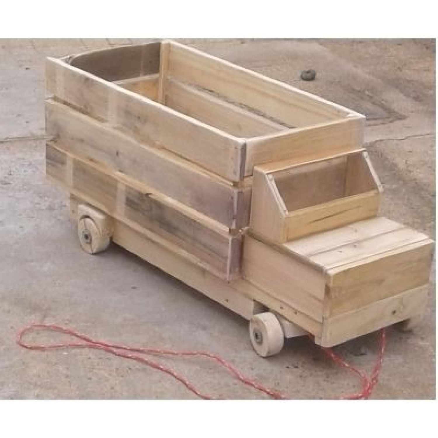 A "One of a kind” Toy Box Truck measuring approximately 110cm (L) (Total length) x 48cm (H) with its box size of 80cm (L) x 41cm (W) x 34cm (D) is handcrafted from re-purposed/recycled pallet wood (ex Food & Fragrances industry). Evident of its previous pallet life, some imperfections (some bark, nail holes, indents, etc.) may be seen, adding to the individuality and character of this enjoyable mobile toy box that can be drawn to your child’s favourite play area. It comes untreated to further our "Green Drive”. Other Toy Box variants can be made and coloured to your order and preference.