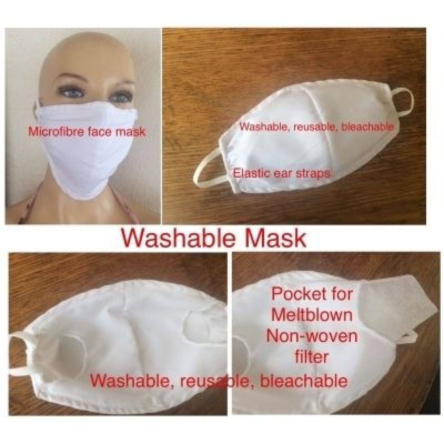 Reusable, dust mask/face mask with lining. Pocket for filter insertion. Microfibre traps dust and air particles, preventing the dust, bacteria and pollution from reaching your face. Mask is structured and shaped to fit over the nose and chin naturally, so no discomfort or extra reason to adjust. Fully washable, fabric can be bleached and sanitized for reuse, adding extra protection, lined. Pocket to insert non-woven bound filter paper, which is disposable. Comfortable elastic ear straps, one size.